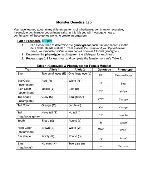 Read Online monster genetics lab answer key Nook ManyBooks
